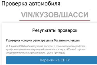 С сайта Госавтоинспекции убрали сервис проверки истории регистрации автомобилей по VIN-номеру. Теперь пользователям для совершения такой операции предлагается пройти на портал Госуслуг, где проверка стоит 200 рублей. Источник: https://news.drom.ru/VIN-101658.htmlОпубликовано: 04.01.2026 11:30