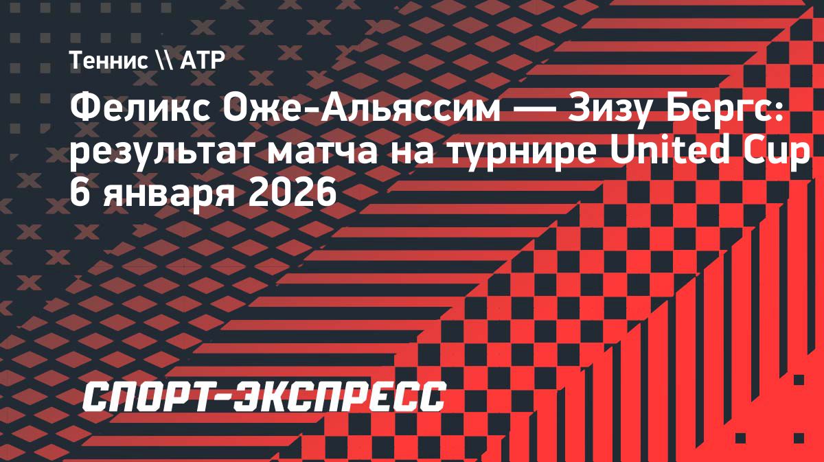 Бельгиец Зизу Бергс обыграл канадца Феликса Оже-Альяссима на турнире United Cup — 6:4, 6:2. Встреча продлилась 1 час 39 минут. Командный турнир проходит в Австралии. Источник: https://www.sport-express.ru/tennis/atp/news/feliks-ozhe-alyassim-zizu-bergs-rezultat-matcha-na-turnire-united-cup-6-yanvarya-2026-2388322/Опубликовано: 06.01.2026 04:21