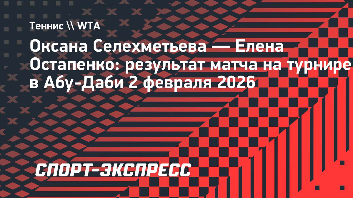 Российская теннисистка Оксана Селехметьева проиграла представительнице Латвии Елене Остапенко в первом круге турнира в Абу-Даби — 7:5, 6:7 (4:7), 2:6. Источник: https://www.sport-express.ru/tennis/wta/news/oksana-selehmeteva-elena-ostapenko-rezultat-matcha-na-turnire-v-abu-dabi-2-fevralya-2026-2395484/Опубликовано: 02.02.2026 19:41
