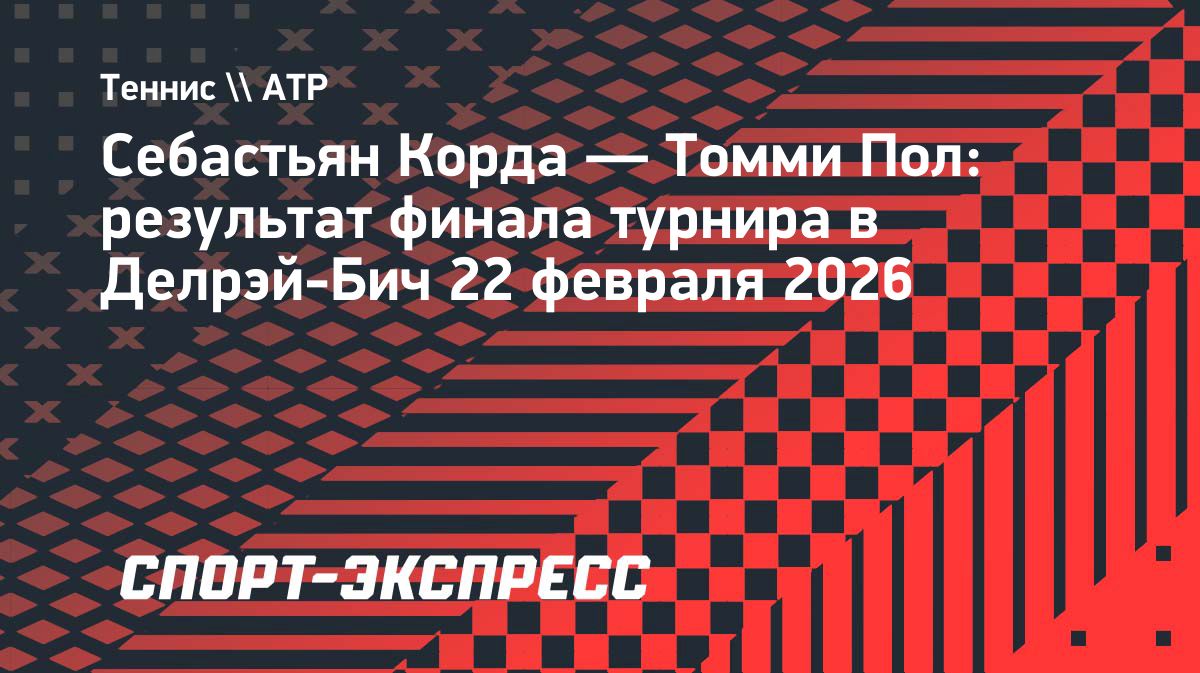 Американский теннисист Себастьян Корда победил соотечественника Томми Пола в финале турнира в Делрэй-Бич — 6:4, 6:3. Источник: https://www.sport-express.ru/tennis/atp/news/sebastyan-korda-tommi-pol-rezultat-finala-turnira-v-delrey-bich-22-fevralya-2026-2401568/Опубликовано: 23.02.2026 01:38