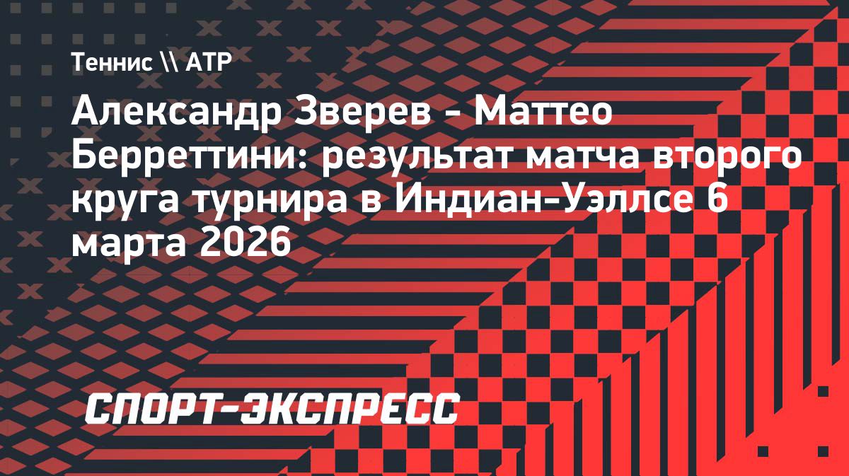 Немецкий теннисист Александр Зверев обыграл итальянца Маттео Берреттини в матче второго круга турнира в Индиан-Уэллсе – 6:3, 6:4. Источник: https://www.sport-express.ru/tennis/atp/news/aleksandr-zverev-matteo-berrettini-rezultat-matcha-vtorogo-kruga-turnira-v-indian-uellse-6-marta-2026-2404885/Опубликовано: 06.03.2026 23:59