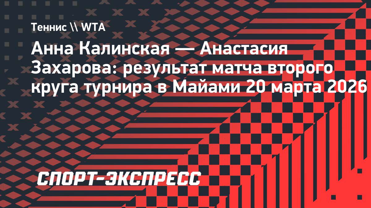 Российская теннисистка Анастасия Захарова обыграла соотечественницу Анну Калинскую в матче второго круга турнира в Майами — 3:6, 6:1, 7:5. Источник: https://www.sport-express.ru/tennis/wta/news/anna-kalinskaya-anastasiya-zaharova-rezultat-matcha-vtorogo-kruga-turnira-v-mayami-20-marta-2026-2408901/Опубликовано: 20.03.2026 23:07