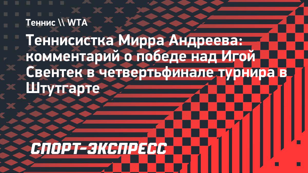 Российская теннисистка Мирра Андреева поделилась эмоциями от победы над 4-й ракеткой мира полькой Игой Свентек в четвертьфинале турнира в Штутгарте (Германия). Источник: https://www.sport-express.ru/tennis/wta/news/tennisistka-mirra-andreeva-kommentariy-o-pobede-nad-igoy-sventek-v-chetvertfinale-turnira-v-shtutgarte-2416128/Опубликовано: 17.04.2026 21:49