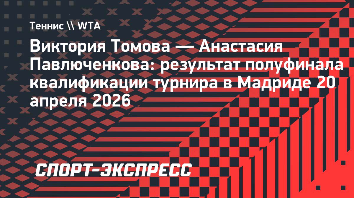 Павлюченкова вышла в финал квалификации турнира в Мадриде Российская теннисистка Анастасия Павлюченкова обыграла представительницу Болгарии Викторию Томову в полуфинале квалификации турнира в Мадриде — 6:3, 6:2. Источник: https://www.sport-express.ru/tennis/wta/news/viktoriya-tomova-anastasiya-pavlyuchenkova-rezultat-polufinala-kvalifikacii-turnira-v-madride-20-aprelya-2026-2416838/Опубликовано: 20.04.2026 18:28