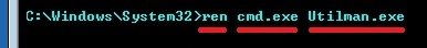 После перезагрузки вы сможете запустить интерпретатор командной строки из меню Logon, нажав на кнопку в левом нижнем углу (она должна запускать Utilman.exe).