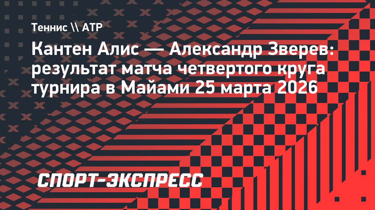Зверев вышел в четвертьфинал турнира в Майами Немецкий теннисист Александр Зверев обыграл француза Кантена Алиса в четвертом круге «мастерса» в Майами. Источник: https://www.sport-express.ru/tennis/atp/news/kanten-alis-aleksandr-zverev-rezultat-matcha-chetvertogo-kruga-turnira-v-mayami-25-marta-2026-2410021/Опубликовано: 25.03.2026 06:51