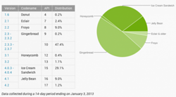 Компания Google выпустила обновлённые данные о проценте распространения различных версий своей мобильной операционной системы Android. За период новогодних праздников последние две версии, 4.1. и 4.2. под общим названием Jelly Bean, сумели преодолеть 10%-ю отметку, спустя полгода с момента релиза.