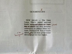Победивший принт был рекламой сервиса видеостреч в социальной сети Google+ (Google+ Hangout). В рекламе приводилась новость о том, что тибетский лидер в изгнании Далай-Лама не смог приехать на празднование 80-летия Десмонда Туту, лауреата Нобелевской премии мира, из-за того, что власти ЮАР не выдали ему визу. Газетная новость была якобы исправлена красной ручкой: слова "не смог приехать" были изменены на "присоединился", и к тексту были добавлены слова "посредством видеовстречи". Реклама была напечатана на целую полосу в газете The New York Times.